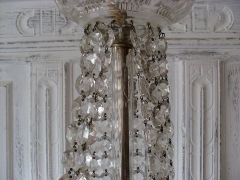 Fremstår med en lille skade på glasstammen i toppen, se billed. Skaden ses ikke når kronen er hængt op.