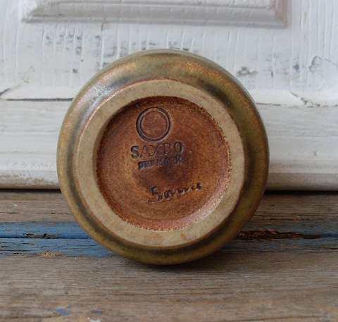 Edith Sonne for Saxbo, vase i organisk facon med skøn glasur. Stemplet Saxbo, Denmark - signeret Sonne. Højde 15cm.