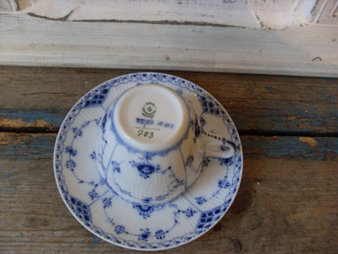 Royal Copenhagen Musselmalet halvblonde sjælden kontorkop No. 703, 1. sort. Mål på selve koppen: Højde 8cm. Diameter 9,5cm.