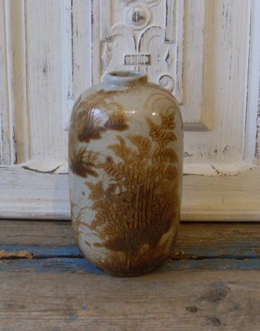 Niels Thorsson for Royal Copenhagen unika oval vase dekoreret med bregner. Stemplet de tre bølger samt Thorssons mærke. Højde 19cm. Mål 8,5x10cm.