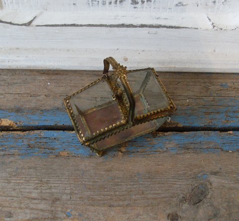 1800tals fransk skrin i sjælden facon som en kurv med fine detaljer. Højde uden hank 6,5cm. Mål 5x9cm.