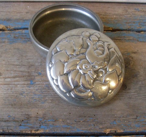 Hertz & Ballin skønvirke bonbonniere i tin fra 1919 Højde 5cm. Diameter 10,5cm. Stemplet: HB - 1919 - tin - Danmark