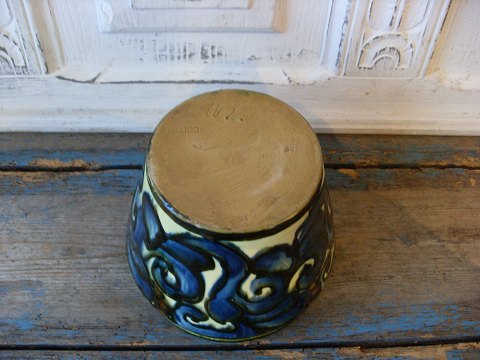 Flot Danico ko-horns dekoreret urtepotteskjuler. Fremstår med enkelte glasur afslag. Højde 14,5cm. Diameter 17cm.