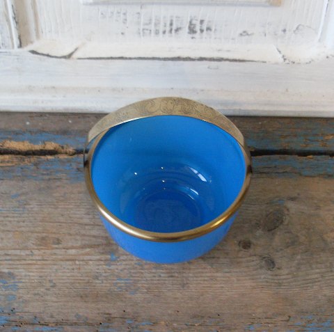 1800tals sukkerskål i lyseblå opaline med messing hank.