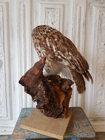Meget flot natugle monteret på træstub. Rigtig fin stand, udført hos Dan Faun i Silkeborg. Højde 43 cm.