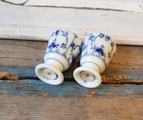 Royal Copenhagen Musselmalet riflet sæt salt & peber bøsser No. 467-480, 1. sort. Originale propper medfølger. Højde 8,5 cm.