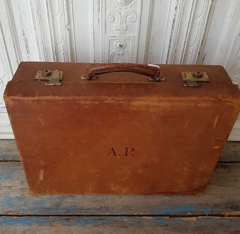 Vintage attachemappe i kernelæder med monogram "A.P." Fremstår med fin patina - nøgle mangler. Mål 36 x 50 cm. Bredde 15 cm.