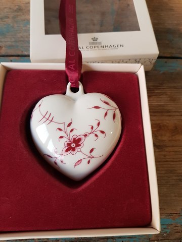 Royal Copenhagen Year heart decorated with purple mussel-painted decoration. Supplied in original box. Factory first. Measures 6.5 x 7.5 cm.
