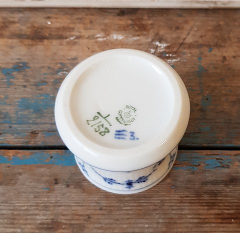Royal Copenhagen Musselmalet riflet bæger No. 2158, 1. sort. Højde 6,5 cm. Produceret mellem 1923-35