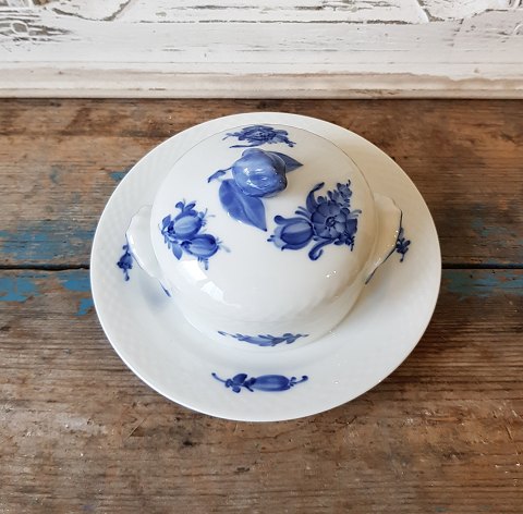 Royal Copenhagen Flettet Blå Blomst smørskål på fast underfad No. 8076, 2. sort. Diameter 17 cm. Højde 9 cm. Produceret mellem 1923-35