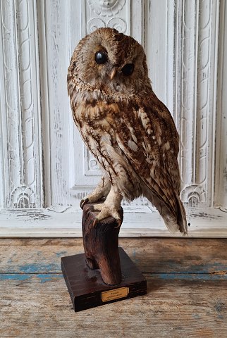 Beautifully stuffed Night Owl mounted on nature branch. Height 38 cm. Is in very fine condition.