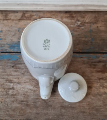 B&G Gray Tone hotel porcelain coffee pot with logo "Palæ" from the Palæ pastry shop in Horsens. No. 1070, Factory first. Height 14 cm.