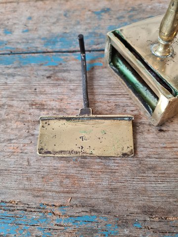 Messing strygejern anno 1850, dekoreret med tulipan samt årstal 1850. Fremstår stemplet. Højde 12 cm. Længde 14 cm.