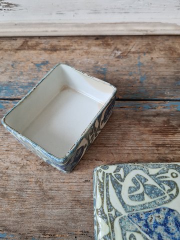 Aluminia Tenera box decorated with bird. No. 716/3104, Factory first. Dimensions 8.5 x 10 cm. Height 6 cm. ight discoloration inside - see picture.