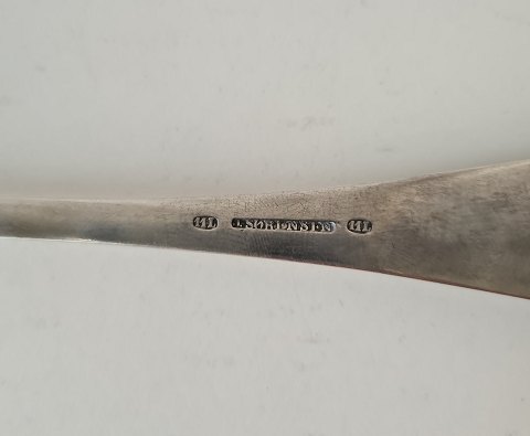 Stor serveringsske i sølv af Jacob Frederik Vilhelm Sørensen - Slagelse 1830-84. Stemplet: 11L - J.Sørensen Længde 27 cm.