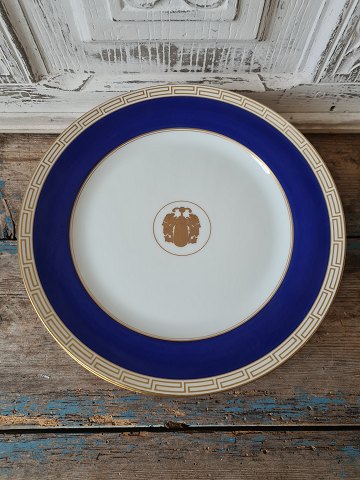 Set on 6 B&G cover plate decorated with royal blue, Greek eternity pattern and coat of arms in gold 26 cm.