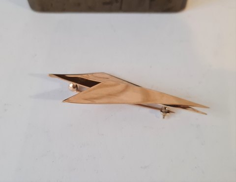 Bræmer Jensen vintage broche i 14 kt guld. Stemplet: Br.J - 585 Mål: 3 x 6,5 cm. Vægt: 7,5 gram.