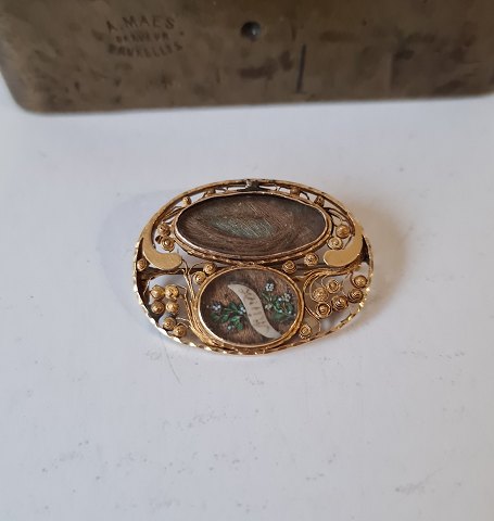 1800s brooch in 14 kt gold - Memorial brooch with hair cap.