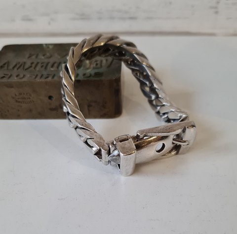 Antonio Fallaci vintage bracelet in silver. Armor chain with clasp in the form of a belt buckle.