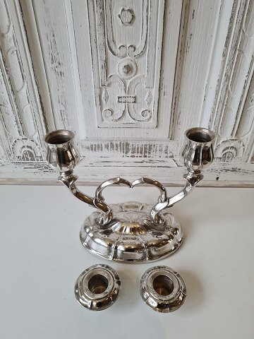 Two-armed candlestick of silver, produced in 1929 by Hugo Grün Stamped the three towers 1929 - 830s - H.Gr With light traces of use. Height 17 cm Length 21.5 cm.