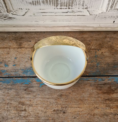 1800 tals sukkerskål i hvid opaline monteret med messing hank.