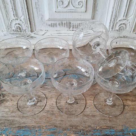 Sæt på 8 franske champagneskåle med smuk ætset dekoration.