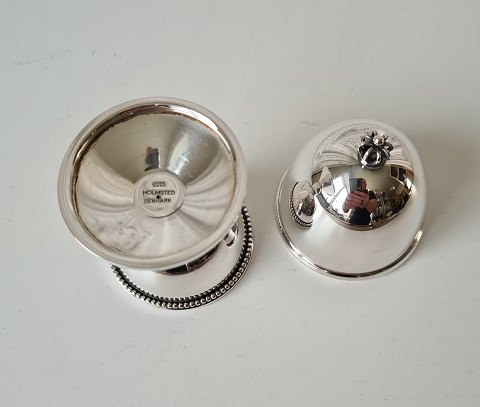 Æggebæger i sterlingsølv, lågknoppen er udformet som en krone. Stemplet: Holmsted - Sterling - Denmark Højde 10 cm.