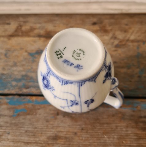 Royal Copenhagen Blue Fluted half-lace cream jug No. 522, Factory first Height 10 cm. Produced between 1898-1923