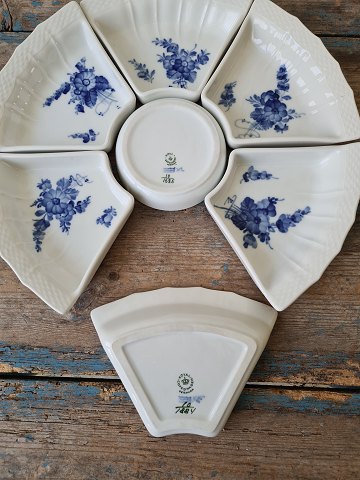 Royal Copenhagen Blå Blomst svejfet cabaretfad med 6 skåle samt 2 centerskåle den ene med guldkant.