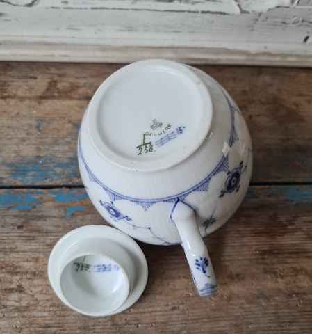 Royal Copenhagen musselmalet riflet lille tekande No. 258, 1. sortering Højde 13 cm. Længde 13,5 cm. Produceret mellem 1894-1900
