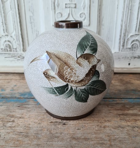 B&G Craquelé vase dekoreretmed fugle No. 38K/4, 1. sortering Højde 16 cm. Diameter 16 cm. Produceret mellem 1915-48