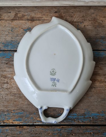 Royal Copenhagen Musselmalet Riflet bladformet fad No. 145, 1. sortering Mål 20,5 x 26,5 cm. Lager: 2