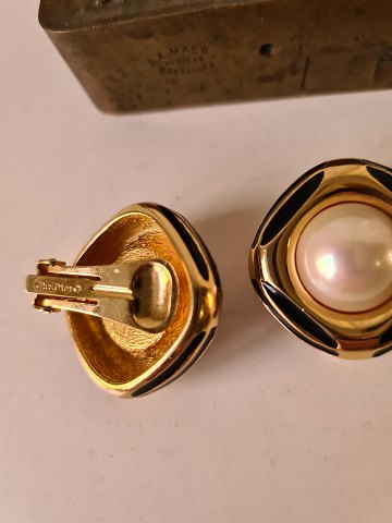 Chr. Dior vintage øreklips i forgyldt metal med emitteret perle