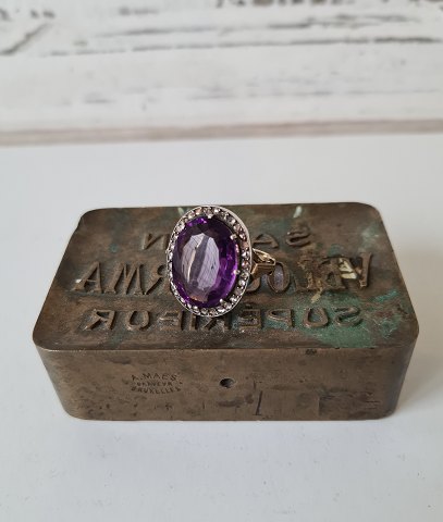 Antik 14 kt guldring - stor smuk ametyst omkranset af talrige diamanter