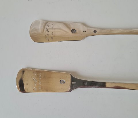 Musling fiske serverings bestik i sølv fra 1913 Stemplet de tre tårne 1913 - G.F Længde 25,5 - 30 cm. Fremstår med gravering på bagsiden