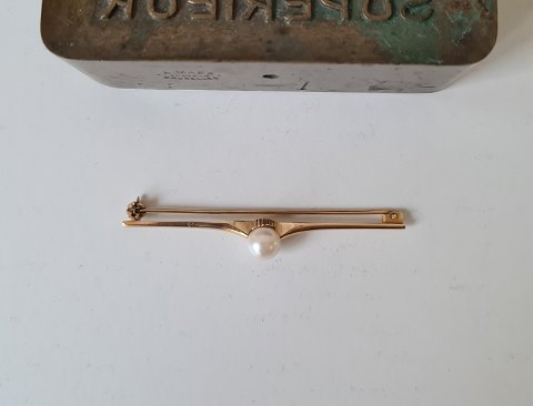 Vintage broche i 14 kt guld med smuk perle af Hugo Grün