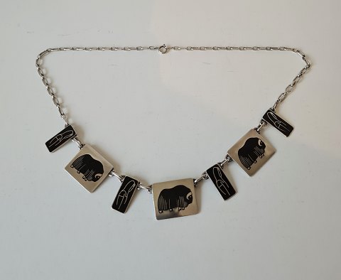 Vintage necklace in sterling silver and black enamel by Jens Tage Hansen with Greenlandic motifs