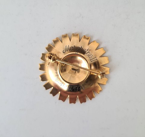 Georg Jensen Marguerit - Daisy jubilæums broche fra 1990 i forgyldt sterlingsølv og hvid emalje