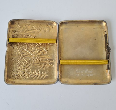 Russisk cigaret etui i sølv dekoreret med skovparti med fem bjørne