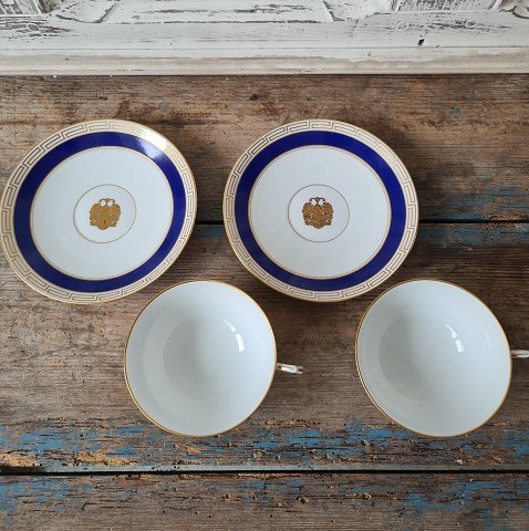Set of 11 B&G teacups decorated with royal blue, Greek eternity pattern and coat of arms in gold.