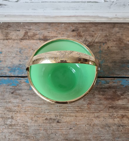 19th century sugar bowl in green opaline glass with brass mounting Height 7 cm. Diameter 12 cm.