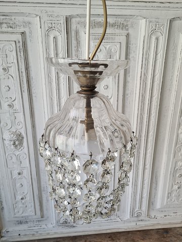 Smuk sækkeformet prisme ampel. Fremstår med et lille skår på top skålen - se billed Diameter 18 cm. Højde 37 cm.