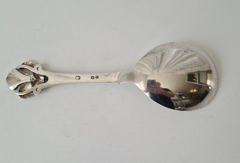 Serveringsske i sølv smukt dekoreret med stedmoderblomst Stemplet de tre tårne 1930 - HS Længde 18,5 cm.