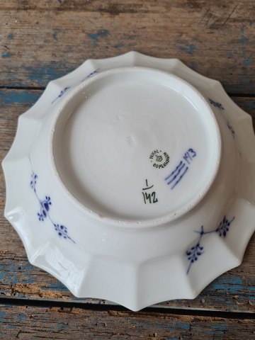 Royal Copenhagen Musselmalet riflet kantet asiet No. 142, 1. sortering Diameter 21,5 cm. Produceret mellem 1898-1923