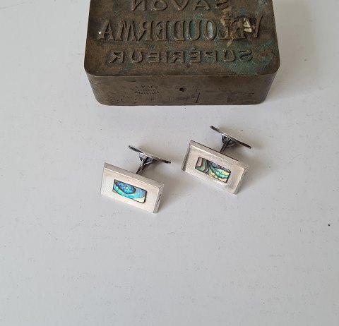 Pair of cufflinks in sterling silver adorned with abelone made by Willy H. Jacob Kromar