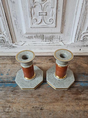 Royal Copenhagen orange-rød Craquelé par lysestager med guldkant No. 212/3303, 1. sortering Højde 11 cm.