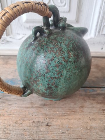 Arne Bang jug with bast handle. The jug has an incredibly beautiful green glaze. Signed AB - 151 Height 17 cm. Perfect condition