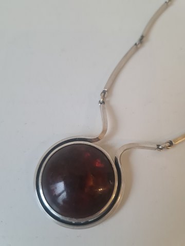 N.E.From vintage halskæde i sterlingsølv med ravperle Stemplet: Sterling - Denmark - N.E.From - 925 Længde 45,5 cm. Diameter på vedhænget 3,5 cm.