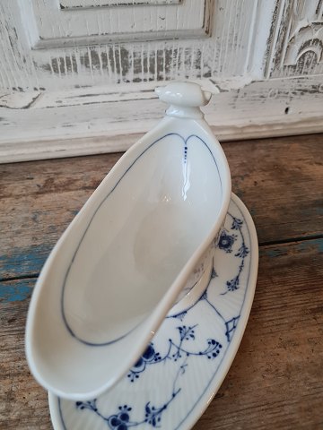 B&G Blåmalet riflet sjælden saucekande 1. sortering Højde 11,5 cm. Længde 21,5 cm. Produceret mellem 1915-48