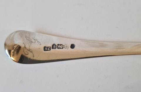 Stemplet med engelske haalmarks. Den ene ske er fra 1785, den anden fra 1786.